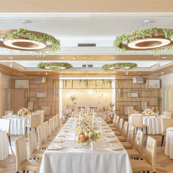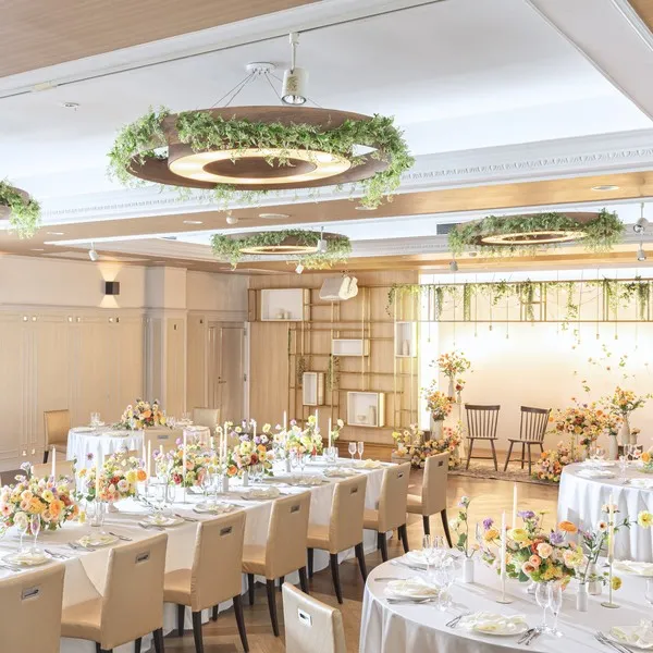 木漏れ日が溢れるウッドを基調としたアットホームなパーティー会場 ゲストの皆さまがゆったりと楽しく過ごせる空間をご用意しております!ガーデン併設の会場で開放感に溢れ明るい雰囲気でお食事を楽しんで!